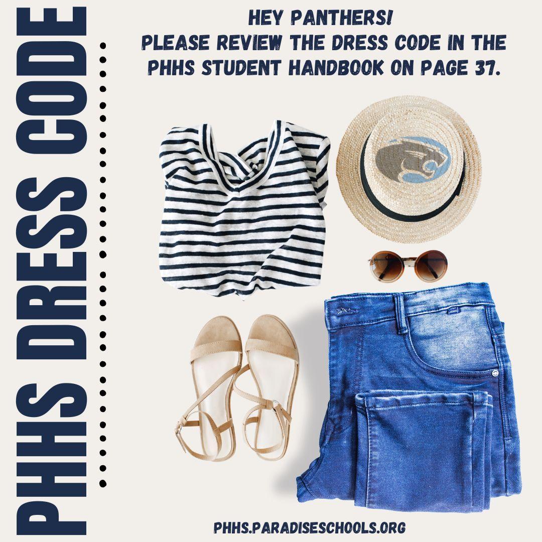 Happy Friday Panthers! As you go through your closet to pick out your outfits for the week, take a moment to refresh your knowledge of the PHHS Dress Code. You can find the dress code in the PHHS Student Handbook on page 37.